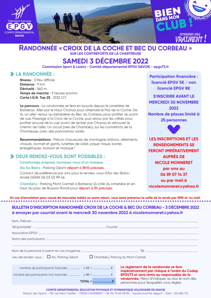 Après une courte pause pour le mois de novembre, le Codep EPGV73 reprend ses randonnées mensuelles, cette fois sur les contreforts de la Chartreuse.