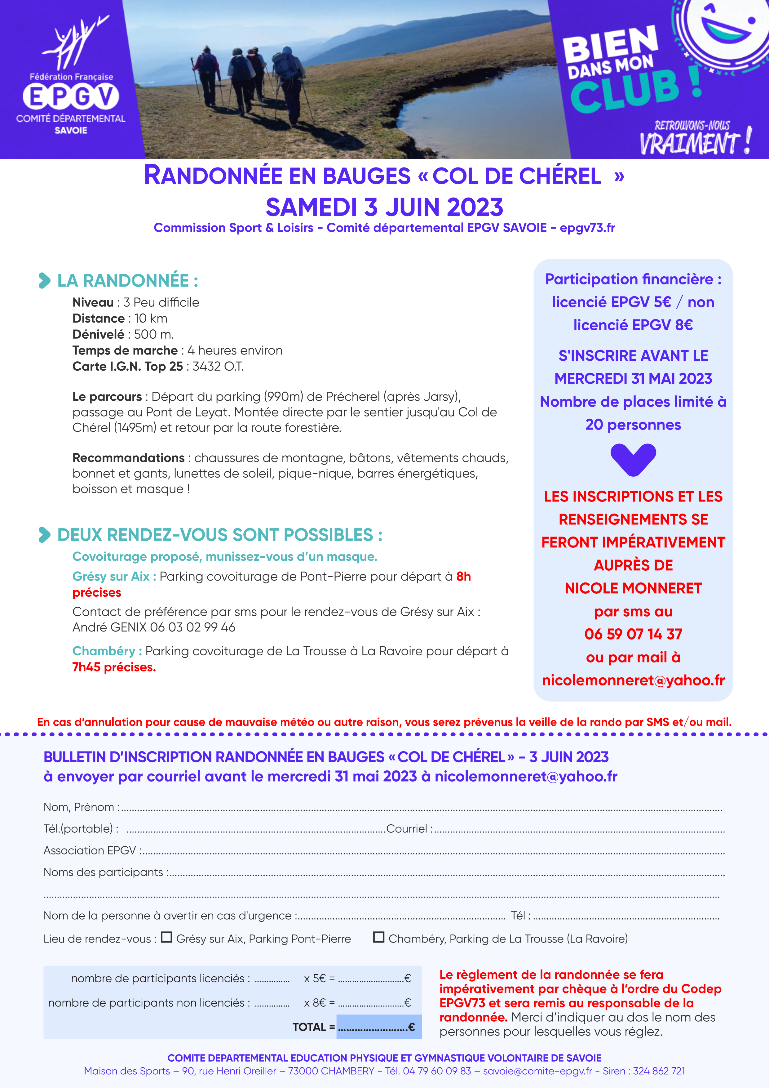 Le bulletin d’inscription est à renvoyer avant le mercredi 31 mai 2023 et le nombre de places limité à 20 personnes.
