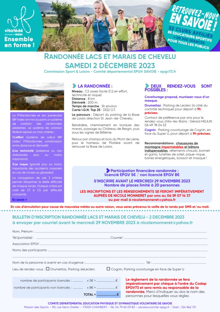 En raisons de mauvaises conditions météorologiques, la randonnée de ce samedi 2 décembre est annulée.