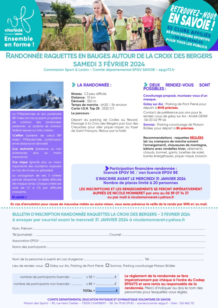 Les bulletins d’inscription sont à renvoyer avant le mercredi 31 janvier 2024 et le nombre de places limité à 20 personnes.